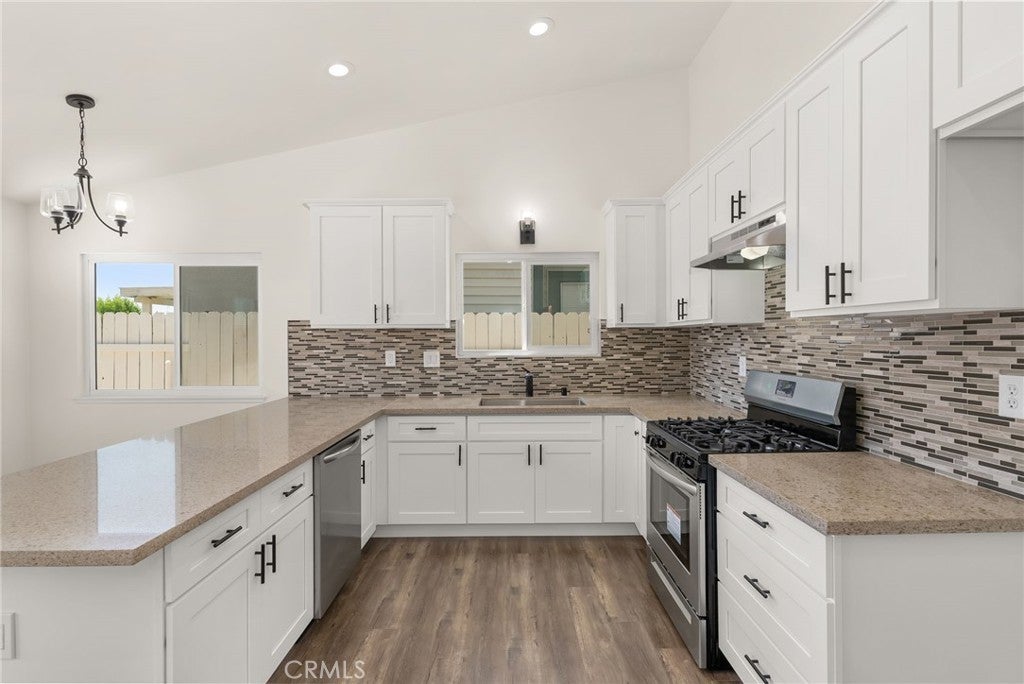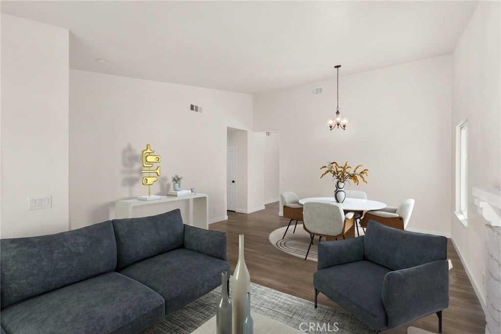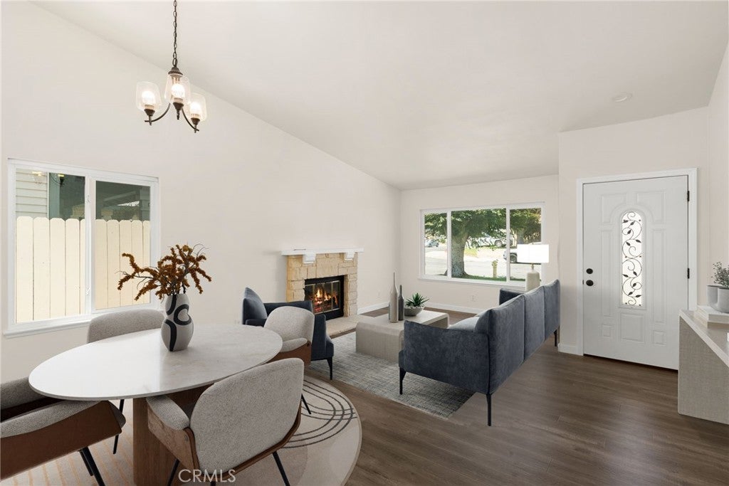Welcome to this beautifully renovated 4-bedroom, 2-bathroom residence located in the highly sought-after Terra Vista community of Rancho Cucamonga—where comfort, style, and convenience come together seamlessly. Renovated in 2020 and meticulously maintained, this move-in ready home offers a thoughtfully designed layout with distinct living and dining spaces, enhanced by soaring vaulted ceilings that create an airy, light-filled ambiance throughout. The inviting kitchen blends functionality with modern design, featuring quartz countertops, bright cabinetry, and stainless steel appliances—ideal for both everyday living and effortless entertaining. The spacious primary suite serves as a private retreat, complete with an ensuite bathroom and direct backyard access through a glass door—perfect for enjoying quiet mornings or unwinding at the end of the day. A cozy fireplace anchors the living room, while wood laminate flooring and faux wood blinds add a refined, contemporary finish throughout. Enjoy added confidence with recent major upgrades, including a new electrical panel (2024), a brand new AC and furnace (January 2025), and updated fencing completed within the past five years. Step outside to a private backyard designed for effortless living, featuring a fully hardscaped, ultra low-maintenance layout—perfect for outdoor dining, entertaining, or simply relaxing without the upkeep. Ideally situated on a quiet, well-maintained street, this home offers exceptional proximity to premier shopping, dining, and entertainment at Victoria Gardens, as well as convenient access to Interstate 15 and Interstate 210. Enjoy nearby parks including Central Park (Rancho Cucamonga), and the benefit of a neighborhood known for its strong sense of community and pride of ownership. Located within a highly-regarded school district, including Coyote Canyon Elementary School and Rancho Cucamonga High School, this home presents a rare opportunity to enjoy turnkey living in one of Rancho Cucamonga’s most desirable neighborhoods. **Some photos are digitally-staged and altered**
