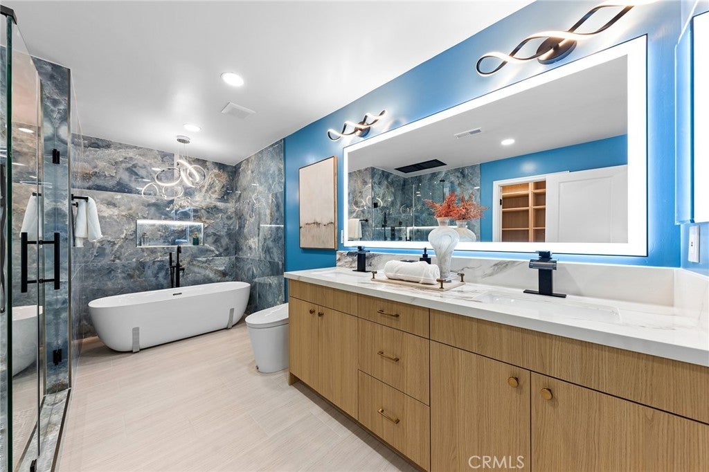 Exceptional value for turnkey modern living. Welcome to 326 E Sierra Madre Ave, a fully reimagined 5 bd 4 ba single-story home featuring over $500,000 in top-to-bottom permitted upgrades. With acoustic-insulated dual master suites, an open-concept layout, and an extensive list of key upgrades, this is not a cosmetic flip - this home has had a total transformation built on thoughtful design, quality craftsmanship, and long-term durability. Inside, natural light fills the home, highlighting the brand-new 16mm engineered hardwood flooring and plush carpeting throughout. New drywall finished in a modern palette complement the home, with select interior walls removed and shear walls restructured to achieve the sense of openness and flow. The kitchen has been thoughtfully designed, featuring high-end appliances that blend seamlessly with the Euro-style cabinetry, with premium finishing throughout. New recessed lighting and updated fixtures throughout the home enhance the ambience and create a very vibrant living environment. Inside the primary suite, you’ll notice the spa-like bathroom featuring a spacious walk-in closet with soft lighting and custom built-in cabinetry. Both suites open directly to the newly landscaped yard, complete with a putting green and a gazebo that create a refined outdoor retreat, perfect for friends and family to enjoy. Nearly every major system has been replaced, with all-new plumbing and sewer lines, 200-amp electrical system with approximately 80% of the home rewired, a new water heater, a 5-ton HVAC system with new ducts, and premium R-32 insulation. A brand-new roof with new plywood offers peace of mind for years to come. Termite fumigation has been completed with all affected wood replaced, and pest control has been performed twice, covering both interior and exterior spaces. The garage has an epoxy coating and is EV ready with a 220V outlet. Located on a quiet and well-kept street in one of Glendora’s most established neighborhoods, this home offers a great balance of privacy and convenience. It’s just minutes from schools, parks, shopping, and dining, with quick access to the 210 Freeway for an easy commute. Don’t miss out on the perfect mix of quality, comfort, and location, this one checks every box. All property details are provided to the best of the agent’s knowledge based on available information. Buyers are encouraged to verify all information independently to their own satisfaction.